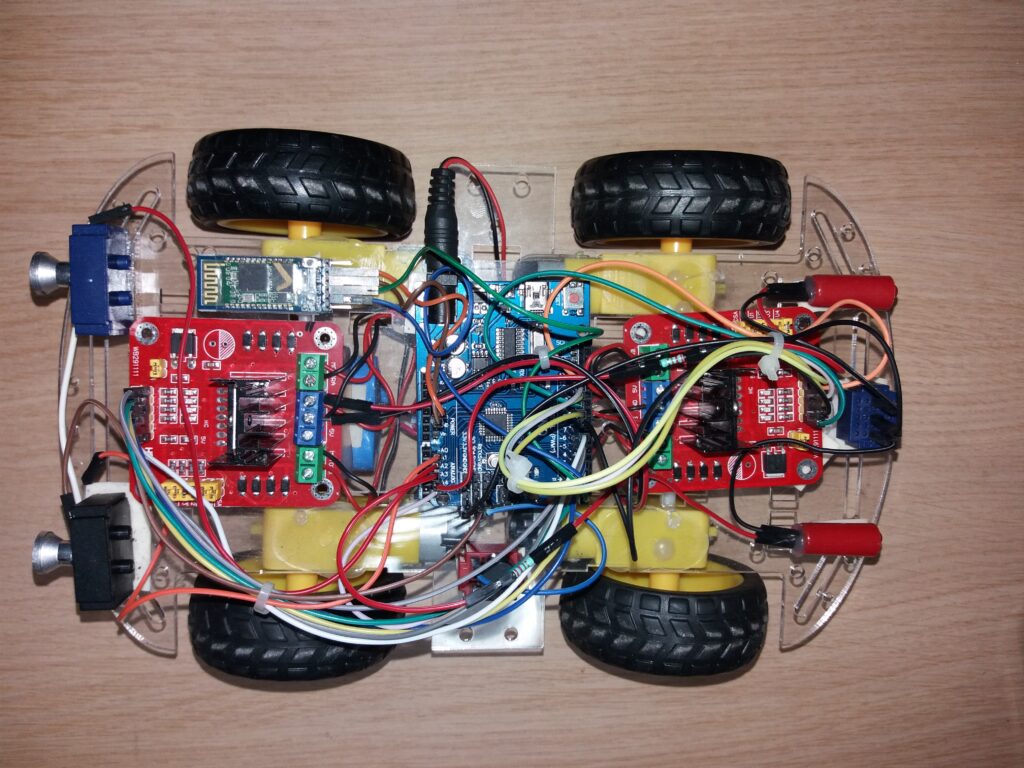 Arduino 4WD robot car bestuurd met telefoon en bluetooth