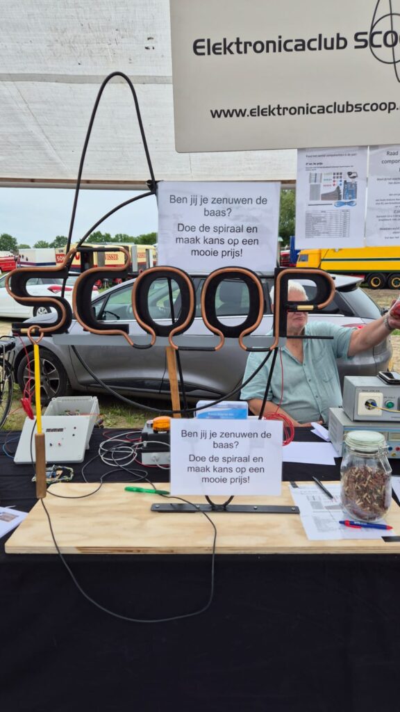 Voorbijgaande bezoekers werden uitgedaagd met één van onze nieuwe projecten waarbij de spiraal moest worden doorlopen om een mooie prijs te kunnen winnen. Sommigen konden hun zenuwen goed onder bedwang houden waar anderen de spiraal niet foutloos kon doorlopen. Om goed te laten zien hoe de spiraal werkt hebben wij de techniek blootgelegd in de schakelkast welke er achter lag, hierdoor was goed te zien wat er allemaal voor nodig was deze te kunnen maken.